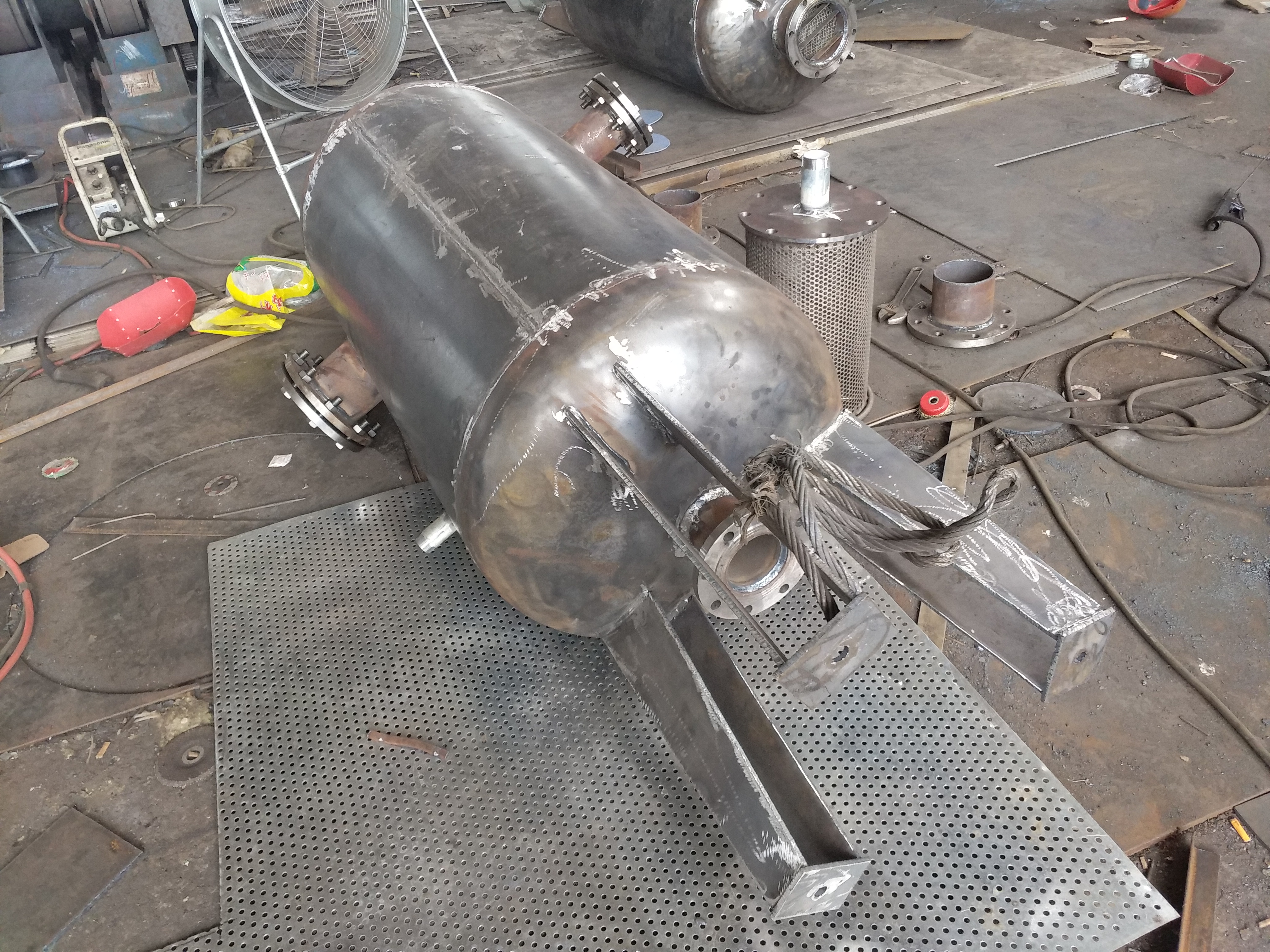 排污冷卻器是利用化學(xué)處理水或生水來(lái)冷卻排污或其它廢水的設(shè)備。減少熱量損失,同時(shí)加熱了化學(xué)處理水,提高了熱-率。也可用于冷卻或加熱水、汽介質(zhì)。排污冷卻器有兩種形式:列管式排污冷卻器和表面式排污冷卻器。目-各電廠的排污水排入地溝,浪費(fèi)了大量的水蒸汽及所含的熱量,如果在運(yùn)行-調(diào)整不當(dāng)可造成排水帶壓,引起安全隱患,-脅著電廠的安全經(jīng)濟(jì)運(yùn)行,為-這-問(wèn)題,連云港靈動(dòng)機(jī)電設(shè)備有限公司設(shè)計(jì)了排污冷卻器。